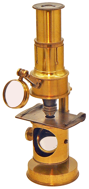 A la fois différents et proches l'un de l'autre. Le Compendium renferme un autre petit modèle de microscope à niche ou à tambour, similaire en qualité et dimensions, lui-aussi inclinable. On a accès à ce second modèle en cliquant sur la photographie de droite. |