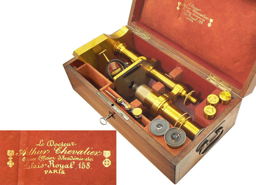 Dans le Compendium, un autre microscope "Arthur CHEVALIER" porte quelquefois, la signature de BOUQUETTE. Il suffit de cliquer sur la vignette pour ouvrir la page correspondante. |