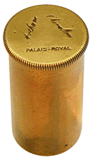 La marque du constructeur figure selon les côtés d'un triangle, sur chacun des étuis contenant une série. On la retrouve, gravée sur la potence du microscope. |