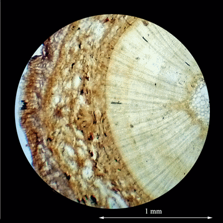 Nous avons testé le petit microscope en observant deux lames préparées, semblables à celles qui, autrefois, accompagnaient ces instruments. Nous avions déjà utilisé la préparation du puceron lors d'essais avec la lentille de Stanhope d'un microscope universel de poche. Aujourd'hui, la définition de l'image obtenue est meilleure. |