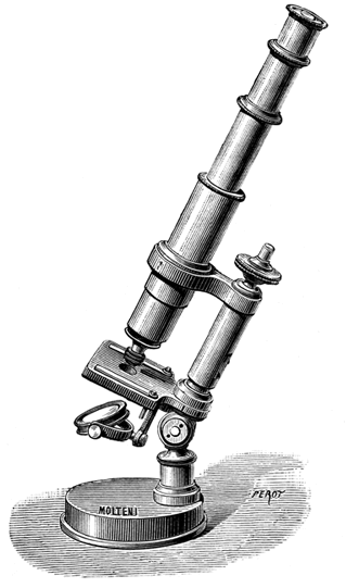 Dans son TRAITÉ ÉLÉMENTAIRE DE MICROSCOPIE (1883), Eugène TRUTAT décrit plusieurs microscopes de la maison MOLTENI, "Constructeur d'Instruments d'Optique, de Physique,