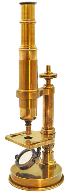 A la manière des microscopes anglais, le tube optique peut, par tirage, prendre une grande longueur en augmentant les grossissements. La hauteur de l'instrument peut passer de 34 à 43 centimètres. |