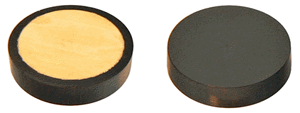 La dame en ébène, de 3 centimètres de diamètre, est incrustée, sur l'une de ses faces, d'un disque en ivoire. En choisissant l'un ou l'autre côté, on obtient un arrière-plan clair ou foncé qui tranche avec la couleur de l'objet que l'on y dépose pour l'observer sous l'éclairage de la loupe articulée. |