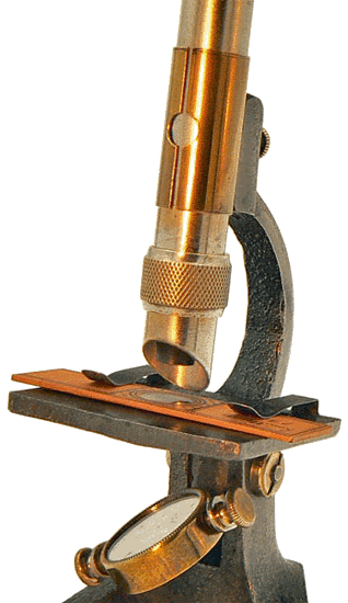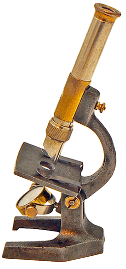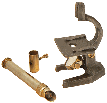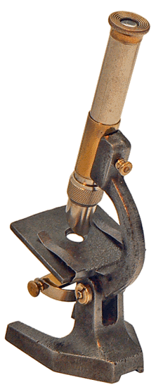 La particularité de ce petit microscope est de pouvoir devenir rapidement un instrument à main, d'une dizaine de centimètres, qui accompagne le naturaliste en herbe sur le terrain. |