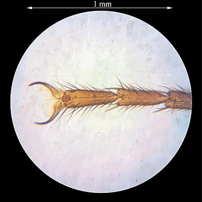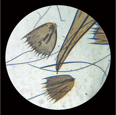 Nous avons observé une préparation de puce à travers l'oculaire tenu à l'envers : l'image est bonne et le grossissement de l'ordre d'une dizaine de fois. |