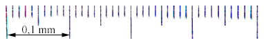 La microphotographie est réduite d'un peu plus de 400 fois par rapport à la gravure originale. Ci-dessus, la largeur du visage de l'enfant est égale à 1/10 mm, comme l'indique l'échelle du micromètre objectif photographié dans les mêmes conditions que le couple mère-fils et les autres personnages de la scène. |