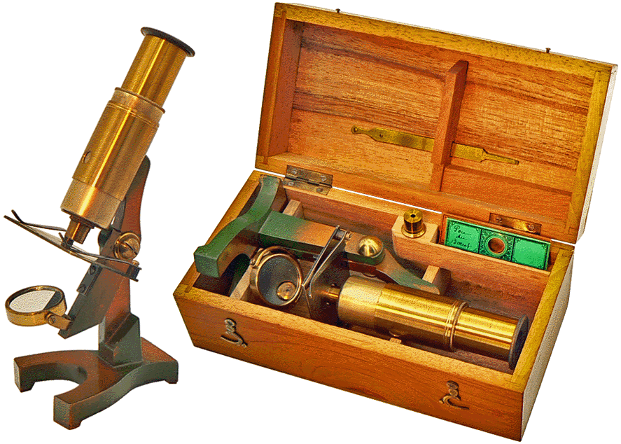 Microscope élémentaire inclinable- "Household microscope"- Hauteur minimum 17 cm - Vers 1900 |