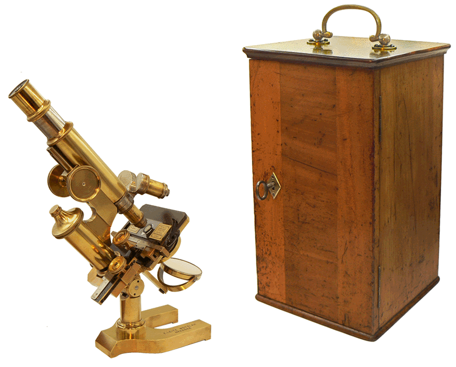 Le n° 28944 gravé sur le pieds du microscope et sur la tranche supérieure de la porte du coffret de rangement indique, si l'on se réfère au document "Ernst Leitz Wetzlar Company Microscope Serial Numbers", qu'il a été fabriqué en 1893. |