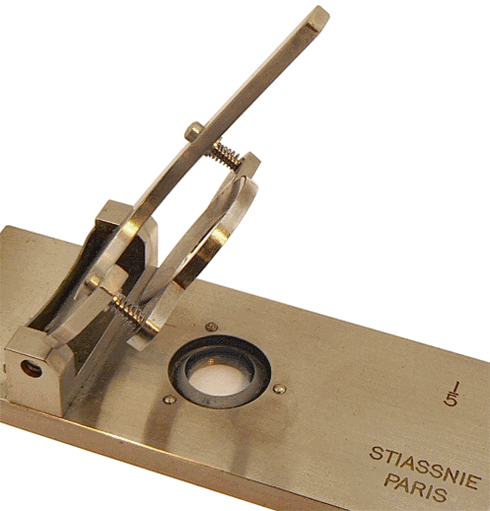 En cliquant sur l'image du tube optique gravé à sa marque, on se dirige vers la page présentant le Microscope Stiassnie utilisé ici. |