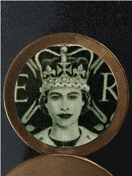 Le 2 juin 1953 se déroulait, à Londres, la cérémonie du couronnement de la Reine Elisabeth II. Pour l'évènement, des "objets souvenirs" ont été produits. Cette triple loupe, de bonne facture, est un de ces objets. |