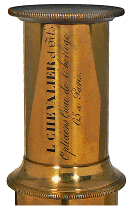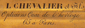 L CHEVALIER pour Louis Chevalier, l'un des fils de Louis-Vincent Chevalier (1744 - 1804), opticien créateur de la célèbre maison du Quai de l'Horloge, alors au n° 31. Sur son site microscopist.net, Brian Stevenson propose l'histoire illustrée de Louis Chevalier. |