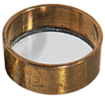 L'instrument est accompagné de 3 objectifs, d'une petite cuve à fond transparent (à gauche) pour l'observation en milieu liquide et d'une cellule d'observation (ci-dessus), ou live box pouvant contenir, entre deux fins disques en verre, des petits animaux vivants. |