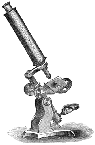 L'objectif est en deux parties dont une bonnette, actuellement posée sur la platine, qui peut recouvrir la partie principale et augmenter le grossissement. La platine est munie d'une butée à glissière qui permet de guider la préparation. L'éclairage est assuré par un miroir concave parfaitement mobile, et un diaphragme à disque. La mise au point s'effectue par système de pignon et crémaillère sur la colonne à section triangulaire. |