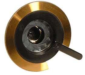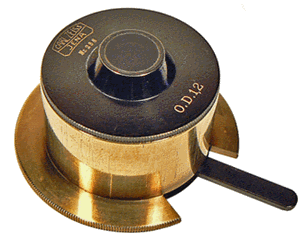 Le second condenseur à fond noir est pourvu d'un diaphragme iris permettant de moduler l'éclairement. La manœuvre d'un petit levier permet d'agir sur le diamètre du faisceau lumineux. |