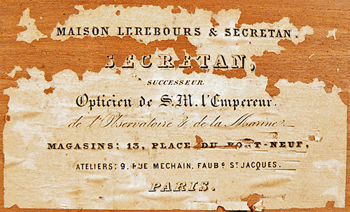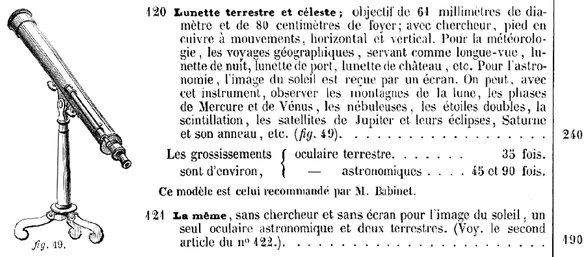 Au tout début du XXe siècle, la lunette - sous une forme identique au modèle des années 1850 - figure toujours dans le catalogue d'ASTRONOMIE ET D'OPTIQUE de G. SECRETAN, successeur de LEREBOURS ET SECRETAN. |