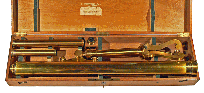 La lunette est équipée de deux oculaires terrestres grossissant 25 et 40 fois et d'un oculaire céleste grossissant 90 fois. L'oculaire céleste est pourvu d'un filtre en verre noir permettant d'observer le Soleil et d'en suivre, par exemple, les éclipses. |