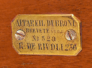 Cet appareil, dû à un jeune ingénieur polytechnicien qui cache sous l'anagramme DUBRONI son véritable nom BOURDIN, "permet de faire des épreuves photographiques sans aucun cabinet noir, c'est-à-dire dans une chambre ou dans un salon". Pour que cela soit possible, l'appareil est doublé intérieurement par une chambre réalisée en verre épais brun jaunâtre protégeant de l'action de la lumière et permettant l'introduction des réactifs liquides nécessaires au traitement chimique.