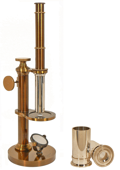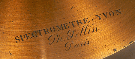 Spectromètre Yvon construit par Ph. Pellin - hauteur minimum 33 cm . A droite les cuves dont les fonds sont transparents - Vers 1880 |