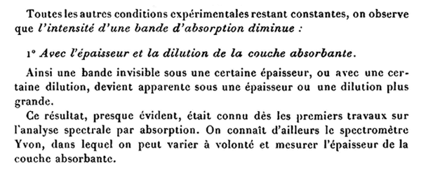 Même sous de faibles proportions des composés actifs, les bandes d'absorptions deviennent décelables si l'observation est réalisée sous une épaisseur importante. Cette épaisseur peut atteindre 80 mm avec le spectromètre Yvon.