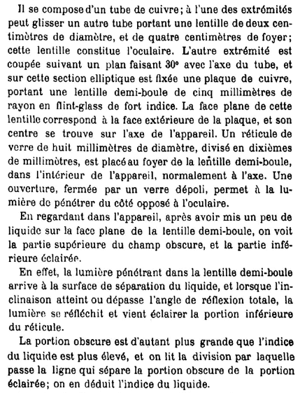 En 1885, Emile BERTRAND présente son réfractomètre dans le |