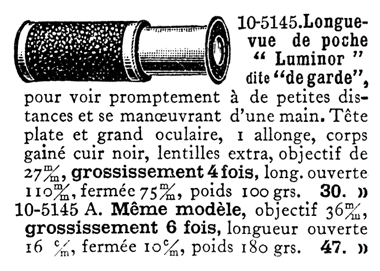 Lunette de Galilée - diamètre de l'objectif 27 mm ; longueur repliée 12 cm |