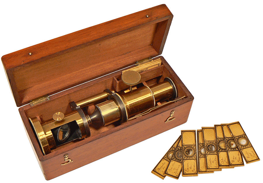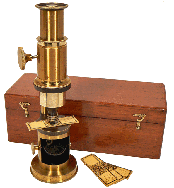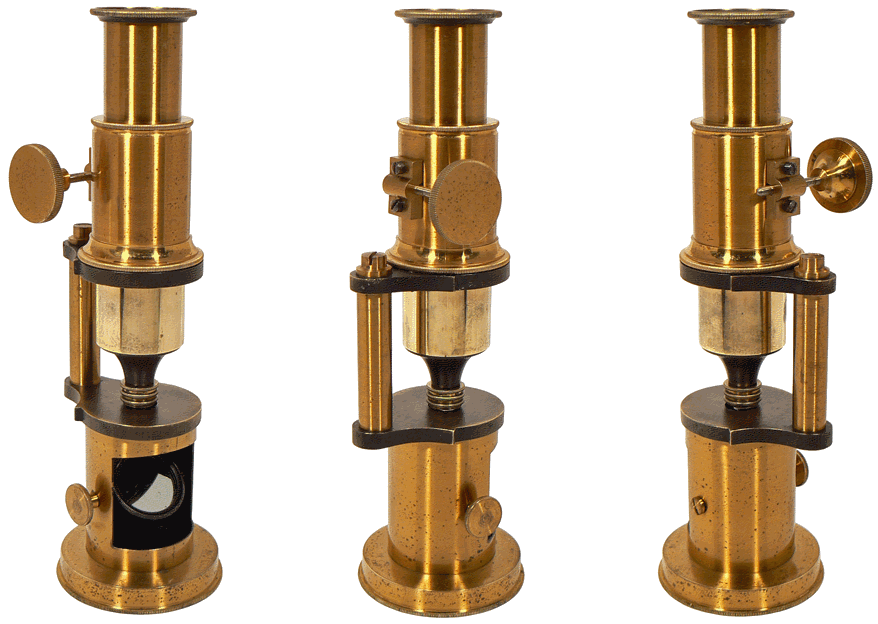 Microscope droit, à niche, colonne et crémaillère - hauteur minimum 19 cm - France - Vers 1880