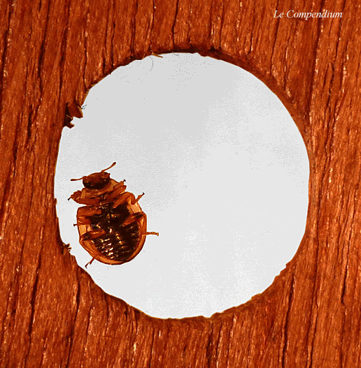 Ce tout petit coléoptère de la famille des coccinellidés mesure à peine 3 mm. Ses dimensions lui permettent de se mouvoir aisément à l'intérieur de la cellule d'observation mais, bien entendu, il reprend sa liberté dès qu'il le peut ... |