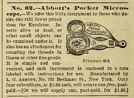 Abbott's Pocket Microscope - Vers 1880 |