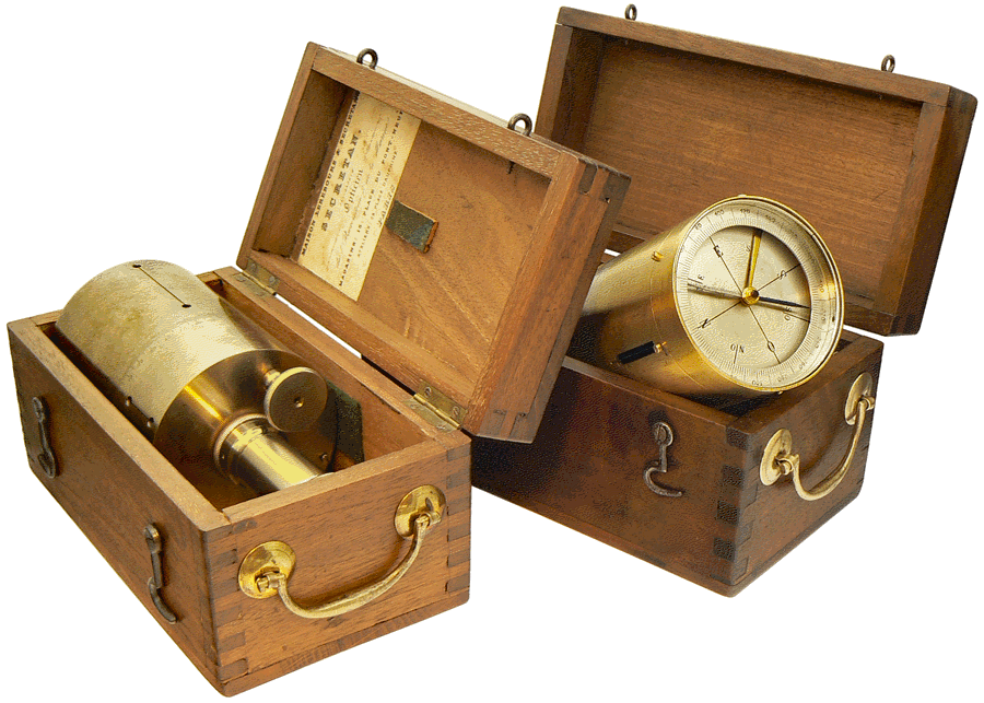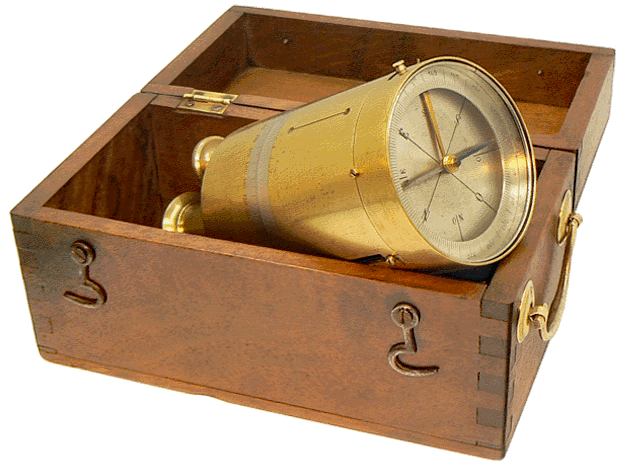 Le coffret de ce premier instrument porte l'étiquette de la Maison Lerebours et Secretan (Secretan, successeur). Il appartenait au Service municipal de Paris comme l'indique la marque du tampon dans le fond du coffret. |
