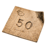 Les subdivisions du carat métrique ont la forme d'une lamelle fine au coin replié pour permettre la préhension à l'aide d'une pince. Elles sont marquées en 1/100. La subdivision, marquée 50 sur l'image à droite, vaut 1/2 carat métrique ou 50/100. La plus petite subdivision rencontrée dans une boîte de carats métriques est le 1/100 : elle correspond à 2 mg. |