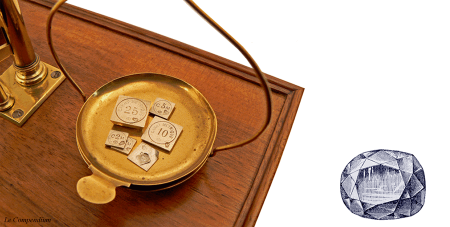 Vers une balance-carat de poche de la Maison Exupère, utilisant des carats de 205 mg. Cliquez sur l'image : |