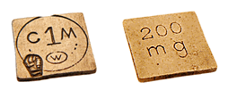 Les poids carats ont la forme d'un tronc de pyramide à base carrée, particularité peu visible pour les plus petits d'entre eux. Leur face principale porte la valeur exprimée en carat métrique et la face opposée la correspondance en gramme. |