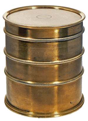 Boîte-tamis pour perles - hauteur 10 cm - diamètre 9 cm - Premier quart du XXe siècle |