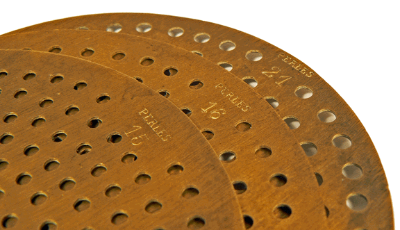 Le numéro gravé sous l'indication PERLES correspond au diamètre des trous exprimé en 1/10 mm. |