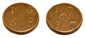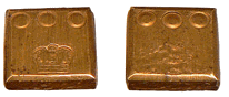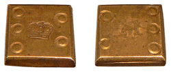 Les indications portées sur une face des trois premières masses rappellent celles des monnaies inscrites à la fin du tableau collé à l'intérieur du coffret. Il pourrait s'agir de tares monétaires permettant de vérifier les pièces de 1, 1/2 et 1/4 guinée (guinea) ... |