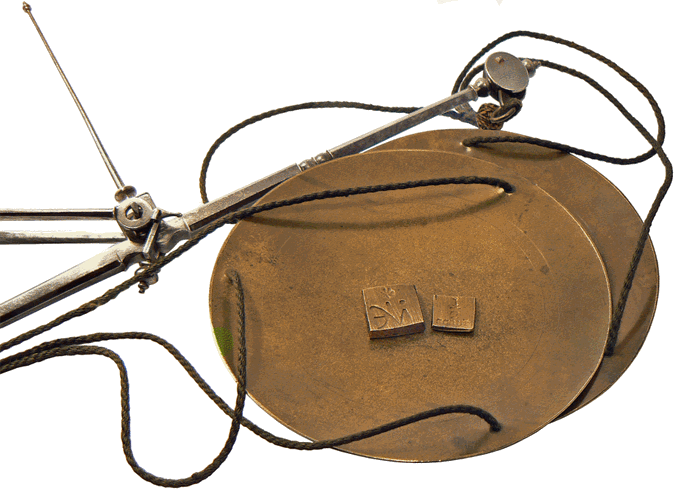 Cette masse marquée de 1 oz, en forme de palet d'un peu plus de 3 cm de diamètre, pèse (30,820 ± 0,005) g. Cette valeur ne correspond, ni à l'once avoirdupois (28,350 g), ni à l'once Troy (31,103 g) : mystère... |