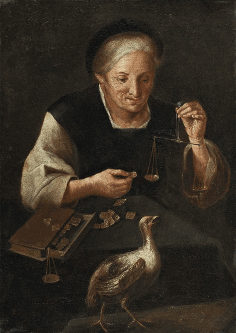 "Frau beim Goldwägen" Anonyme (Ecole allemande) XVIIIe siècle |